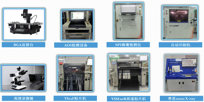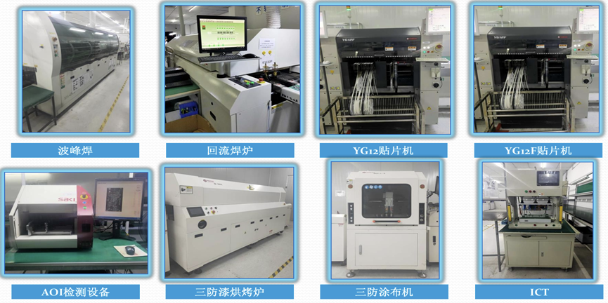工厂位于上海奉贤区,占地面积2000多平方米,厂房使用面积1700多平方米。公司设备现有日本YAMAHA和JUKI高精密SMT贴片机、全自动锡膏印刷机、10温区回流焊接机、无铅波峰焊接插件线、自动三防柒处理生产线、SPI、X-ray、AOI光学检测仪、质量检测设备和成品装配生产流水线。